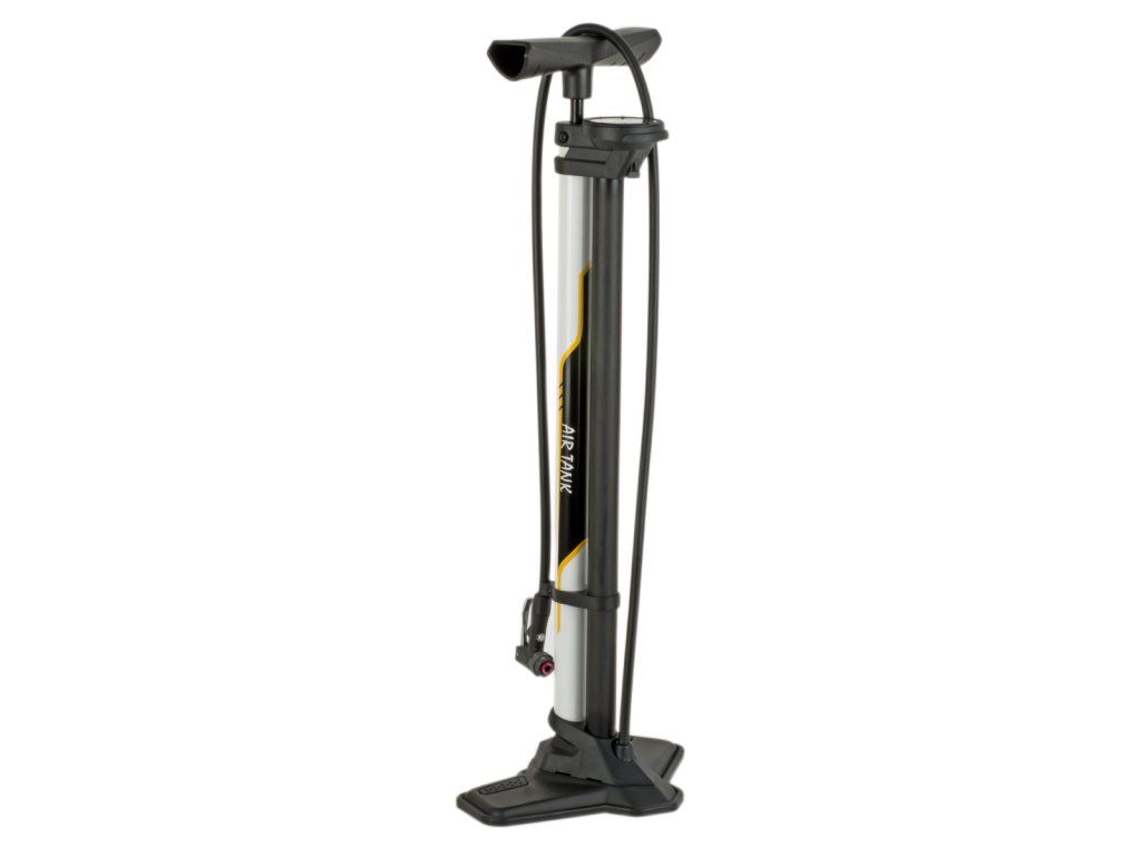 Nožní hustilka AUTHOR AirBar Tubelles se zásobníkem vzduchu pro snadné nahuštění bezdušových plášťů. Přepnutí do režimu „Tubeless“ umožňuje uživateli nahromadit velké množství vzduchu v zásobníku a jeho jednorázové vypuštění do pláště. Manometr na horní části pro snadné čtení.